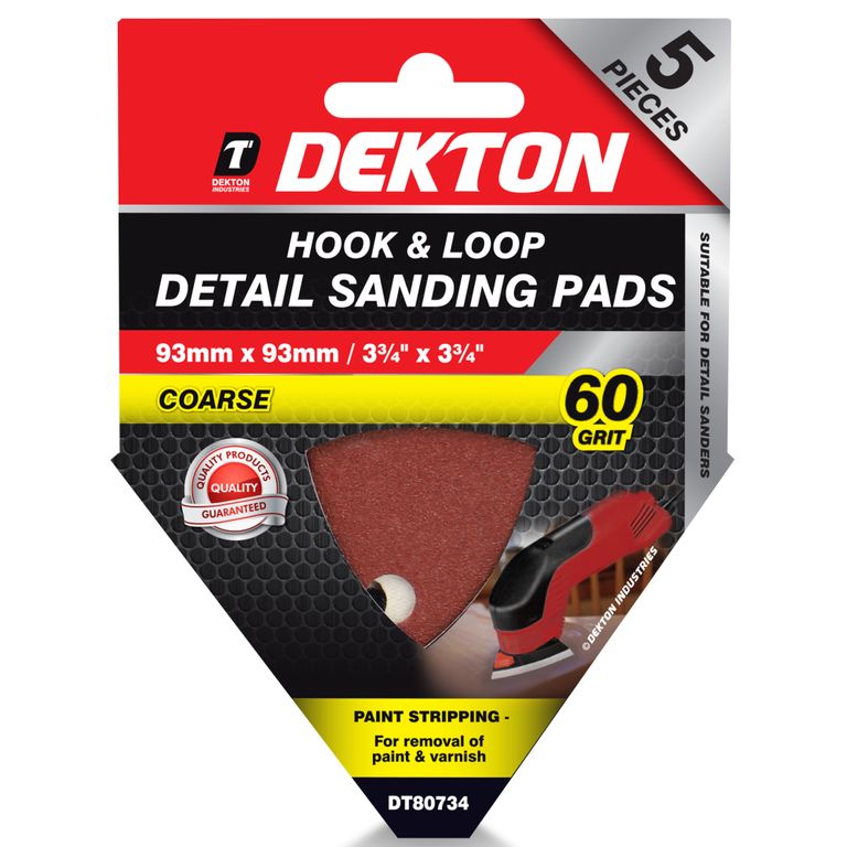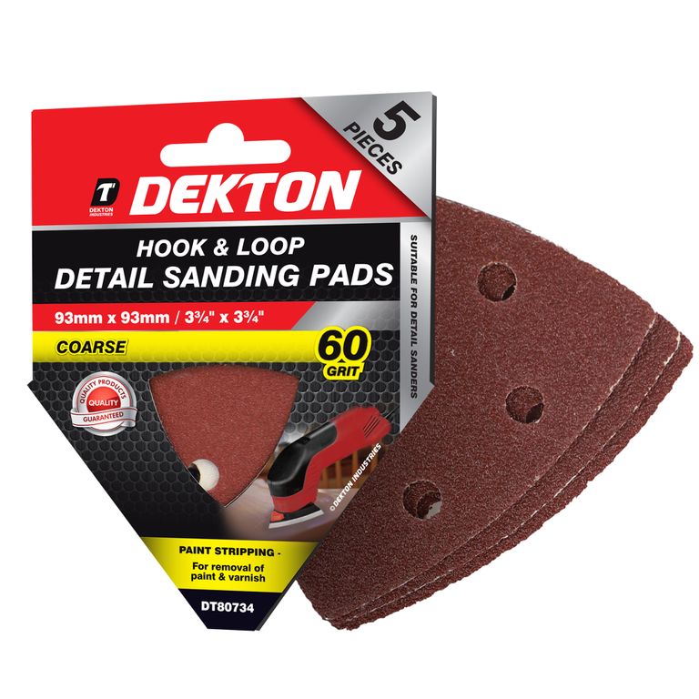 DEKTON 5PC HOOK AND LOOP DETAIL SANDING PADS 93MMX93MM/ COARSE - 60 GRIT
