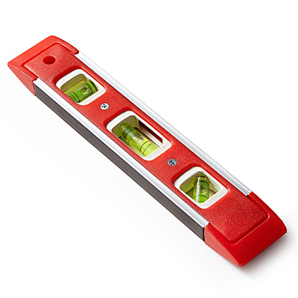 Strong magnetic base. 45 degree vial. Horizontal Vial. Vertical Vial. Hanging Hole . Molded from durable polystyrene with steel milled edges.